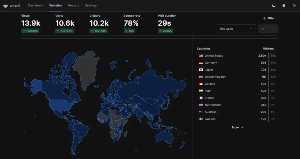 Yesterday, I Don’t Have Spotify reached #2 on Hacker News, getting 700+ points https://news.ycombinator.com/item?id=42110877. This brought in 13k views and over 10k unique visitors, pretty intense for a single day!
